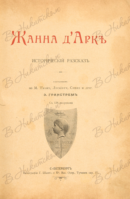 Жанна д'Арк. Исторический рассказ / составил по М. Твэну, Лексюру, Сеппэ и друг. Э. Гранстрем. С 134 рисунками. СПб.: Типография Г. Шахт и К°, [1911].