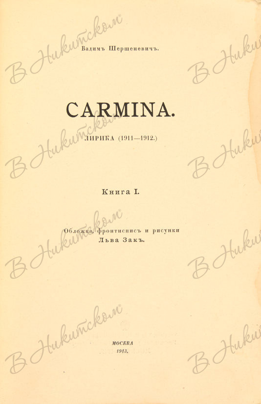 Шершеневич, В. Carmina. Лирика (1911-1912). Кн. 1 Вторая книга поэта.