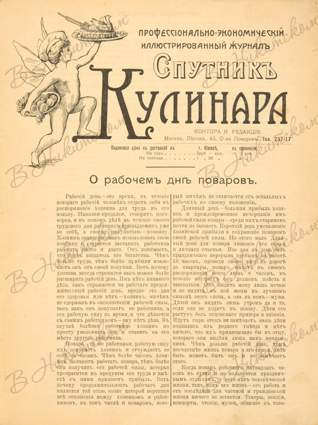 [Редкость]. Спутник Кулинара. Профессионально-экономический иллюстрированный журнал. № 2. Май. М., 1913.