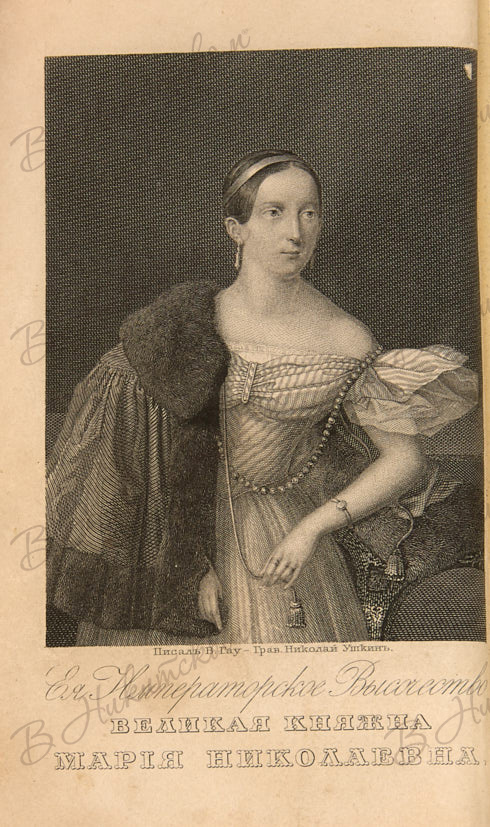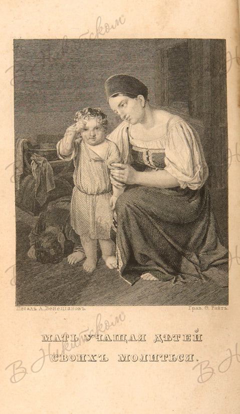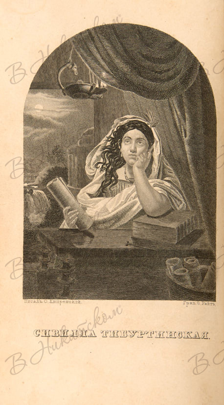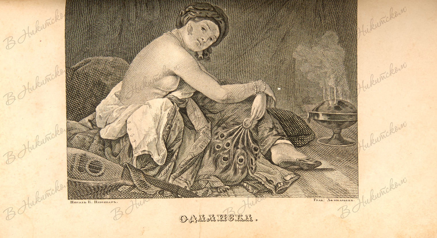 Иллюстрации к альманаху были исполнены лучшими мастерами. В нашем экземпляре полный комплект: литографированный заглавный лист с виньетом, рисованный А. Венециановым, иллюстрации «Ея Императорское Высочество Великая Княжна Мария Николаевна» (по рис. В. Гау, грав. Н. Уткин), «Наводнение 24 ноября 1824 г.» (по рис. В. Шебуева, грав. С. Галактионов), «Сивилла тибуртинская» (по рис. О. Кипренского, грав. Ф. Райт), «Одалиска» (по рис. Е. Плюшара, грав. Афанасьев), «Мать, учащая детей своих молиться» (по рис. А. Венецианова, грав. Ф. Райт).
