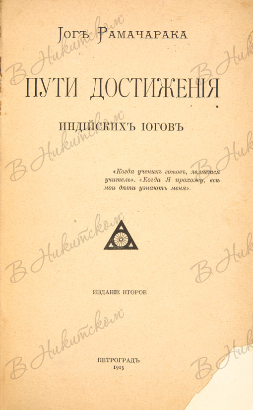 [Аткинсон, У.У.] Пути достижения индийских иогов / йог Рамачарака. 2-е изд. Пг.: Тип. Т-ва А.С. Суворина - «Новое время», 1915.