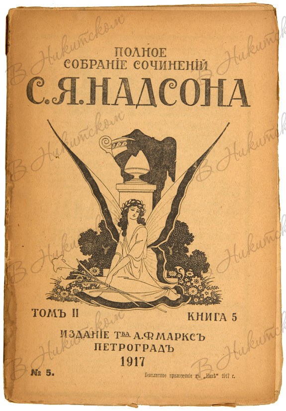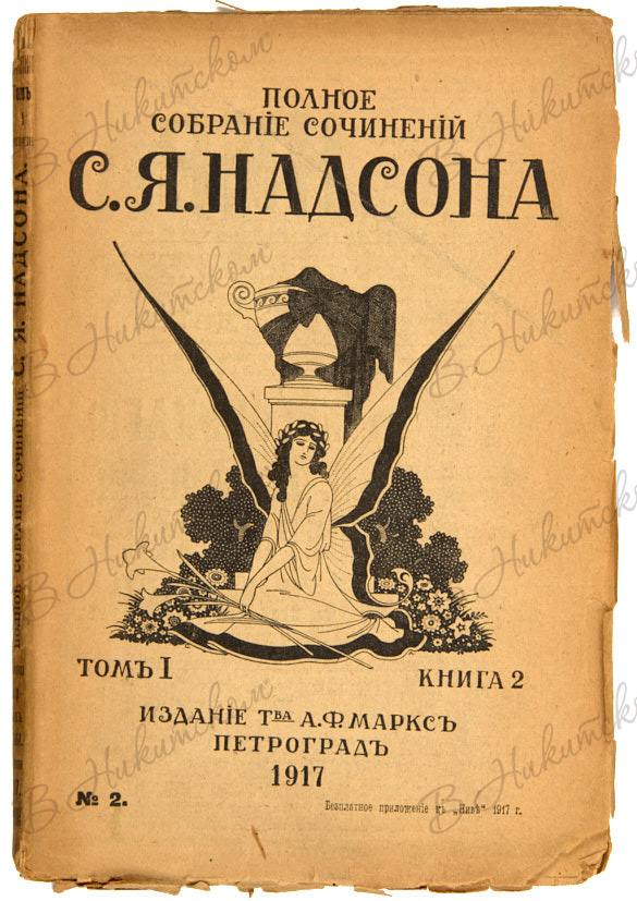 [Надсон, С.Я]. Полное собрание сочинений С.Я. Надсона. С портретом, факсимиле и биографическим очерком / под ред. М.В. Ватсон. Т. 1-2 (кн. 1-8). Пг.: Товарищество А.Ф. Маркс, 1917.