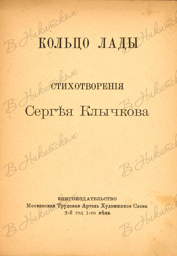 Кольцо лады. Стихотворения Сергея Клычкова. М.: Московская Трудовая Артель Художников Слова, 1919.