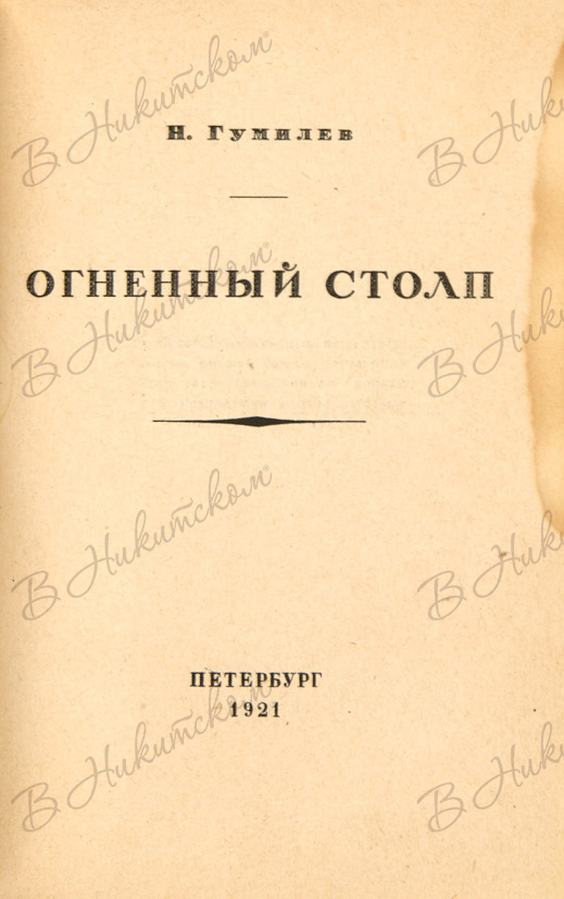 Гумилев, Н.С. Огненный столп. Петербург: Издательство «Petropolis», 1921.