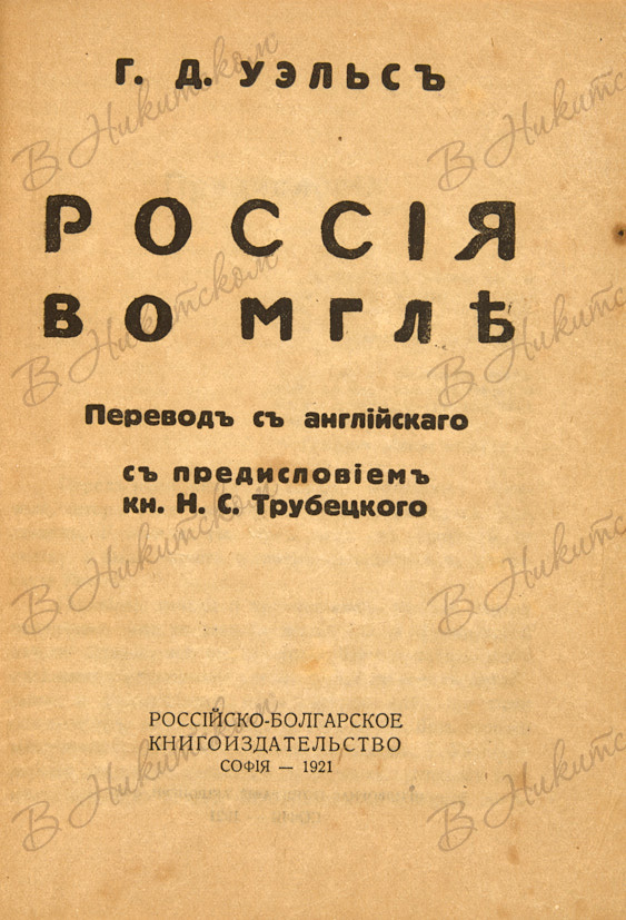 Уэльс, Г.Д. Россия во мгле / перевод с англ. с пред. Кн. Н.С. Трубецкого. София: Российско-болгарское книгоиздательство, 1921.