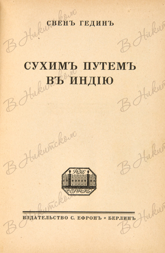 Гедин, С. Сухим путём в Индию. Берлин: Издательство С. Ефрон, [1923].