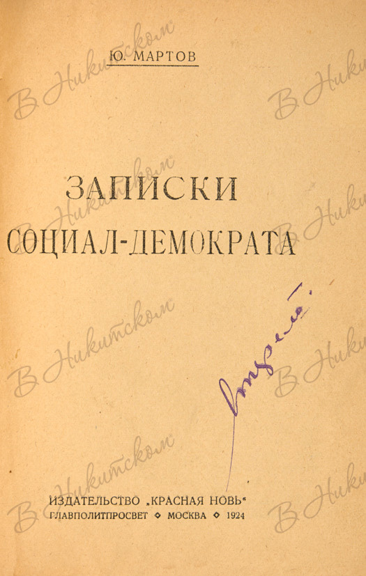 Мартов, Ю. Записки социалдемократа. М.: «Красная Новь», 1924.