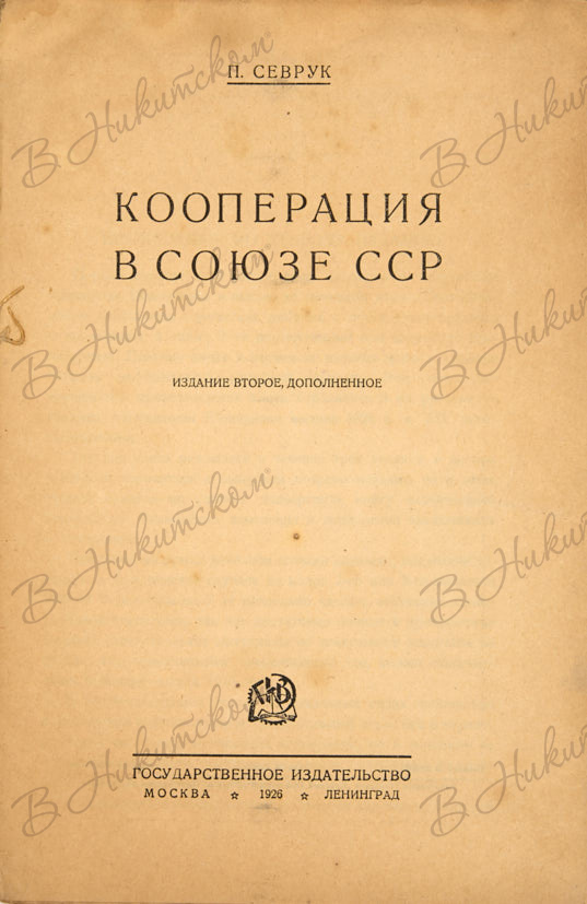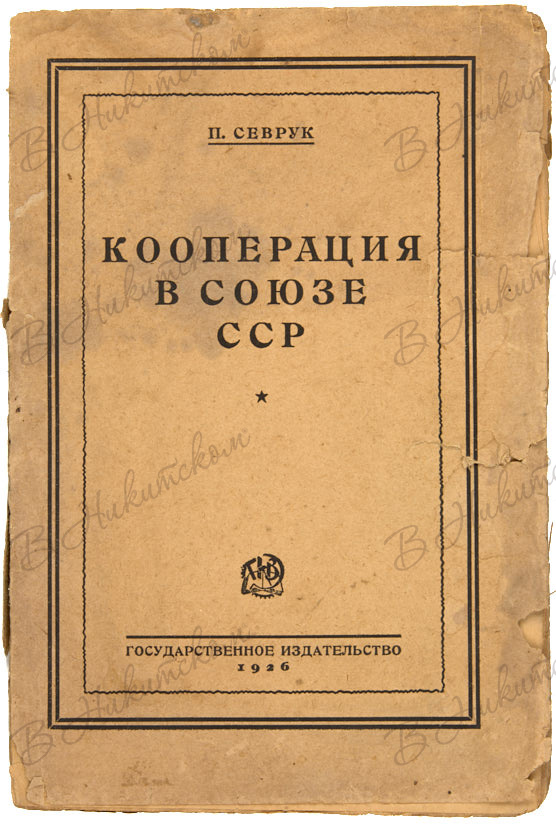 Севрук, П.Н. Кооперация в Союзе ССР. 2-е изд. М.; Л.: Государственное изд-во, 1926.