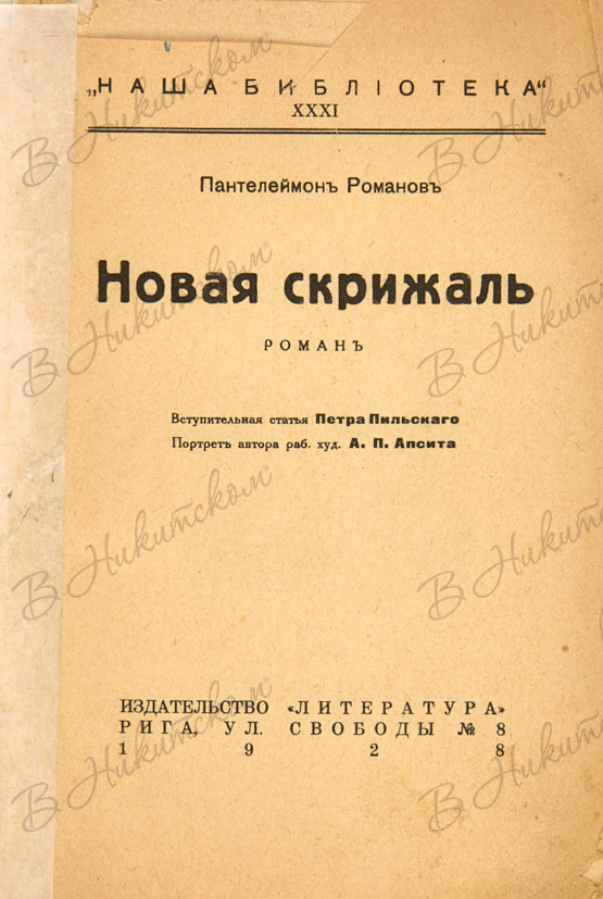 Романов, П. Новая скрижаль. Роман. Рига: Издательство «Литература», 1928.