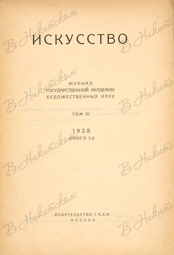 Искусство. 1928 г. Журнал Государственной Академии Художественных Наук. Т. IV. Кн. 1-2. М.: Издательство Г.А.Х.Н., 1928.