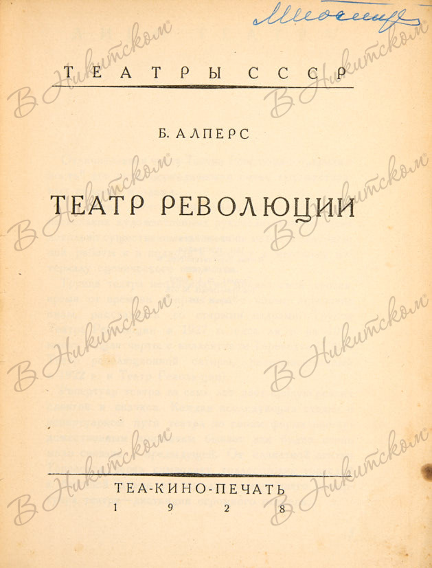 Алперс, Б.В. Театр революции. М.: ТЕА-КИНО-ПЕЧАТЬ, 1928.