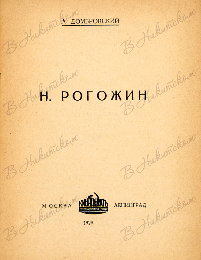 Домбровский, Л. Наум Рогожин. М.; Л.: КИНОПЕЧАТЬ, 1928.