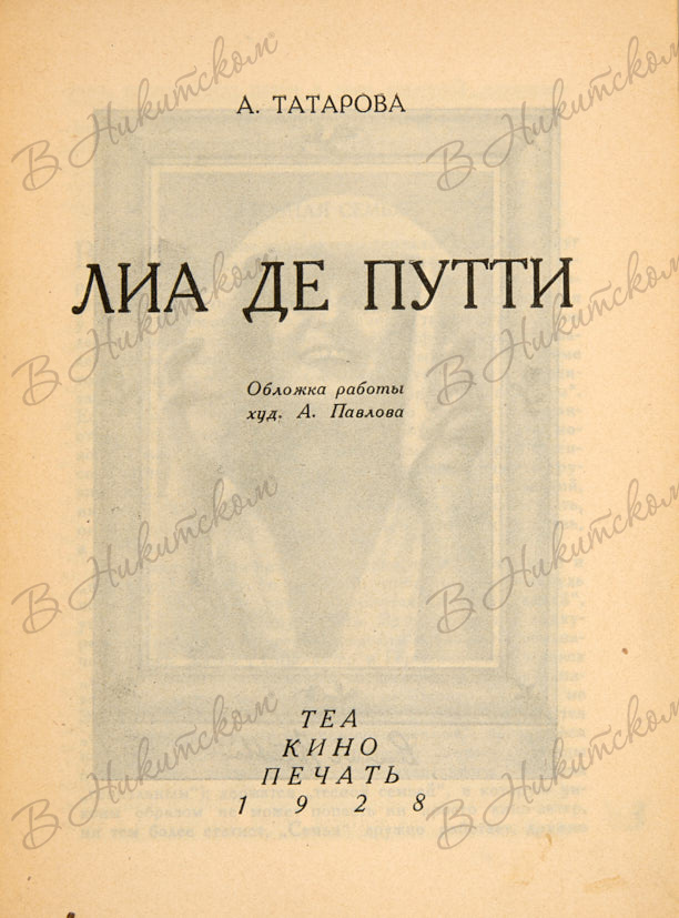 Татарова, А. Лиа де Путти / Обложка работы худ. А. Павлова. М.: ТЕАКИНОПЕЧАТЬ, 1928.