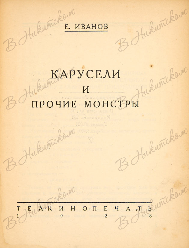 Иванов, Е. Карусели и прочие монстры. М.: ТЕА-КИНО-ПЕЧАТЬ, 1928.