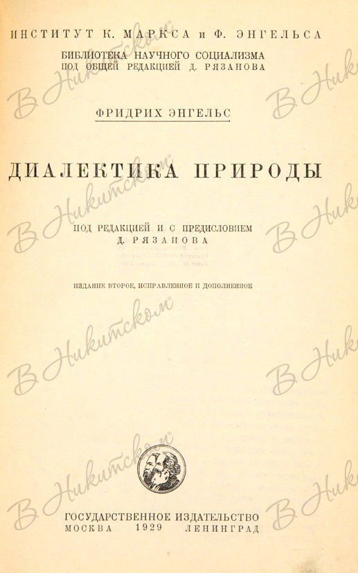 Энгельс, Ф. Диалектика природы. М.; Л.: Государственное издательство, 1929.