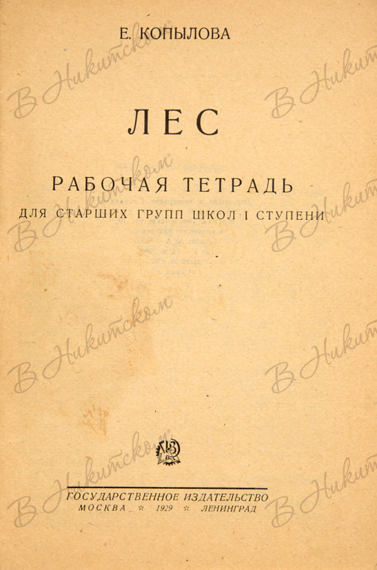 Копылова, Е. Лес. Рабочая тетрадь для старших групп школ I ступени. М.; Л.: Государственное издательство, 1929.