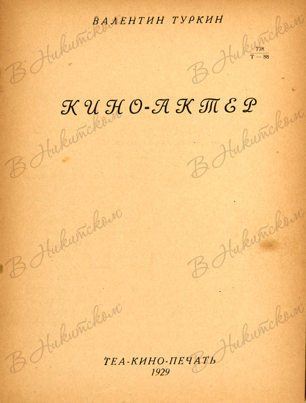 Туркин, В. Кино-актёр. М.: ТЕА-КИНО-ПЕЧАТЬ, 1929.