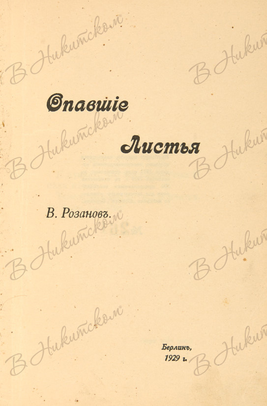 Розанов, В. Опавшие листья. Берлин: Rossica, 1929.