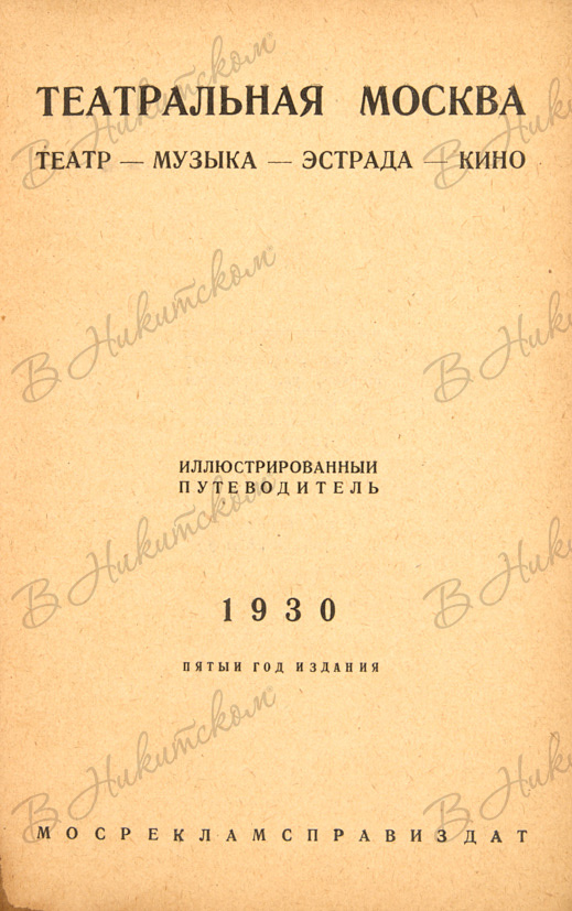 Театральная Москва. Путеводитель. 1930. М.: МОСРЕКЛАМСПРАВИЗДАТ, 1930.