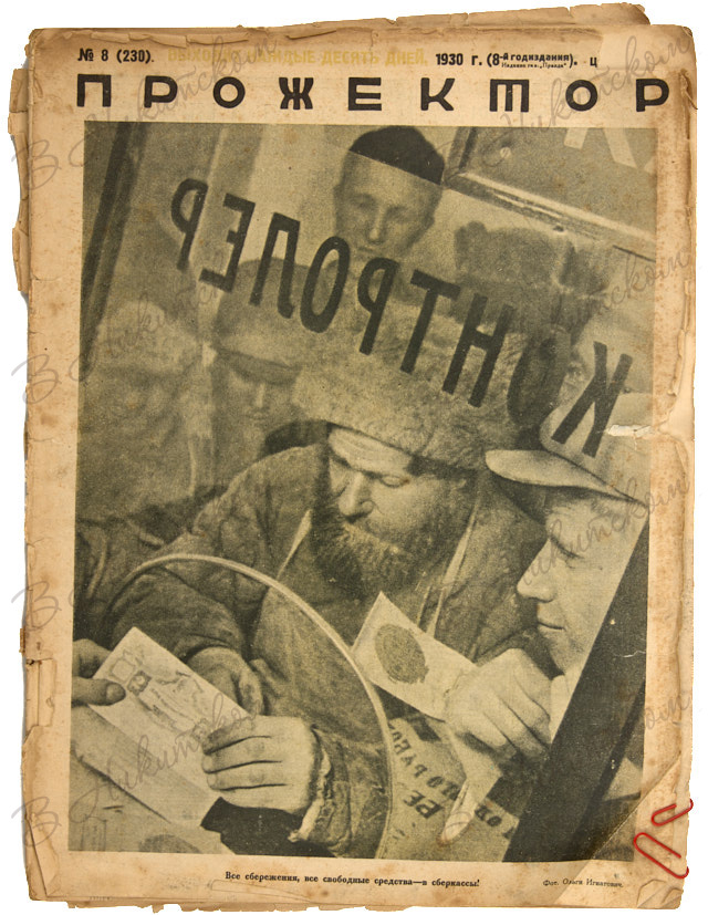 «Прожектор» - советский иллюстрированный литературно-художественный и сатирический журнал. Выходил в Москве как приложение к газете «Правда» в 1923-1935 годах. В то время единственный в СССР многокрасочный журнал. Постоянным художником журнала был К. Ротов, часто публиковались рисунки К. Елисеева, А. Дейнеки, Б. Ефимова, фотографии Р. Кармена.