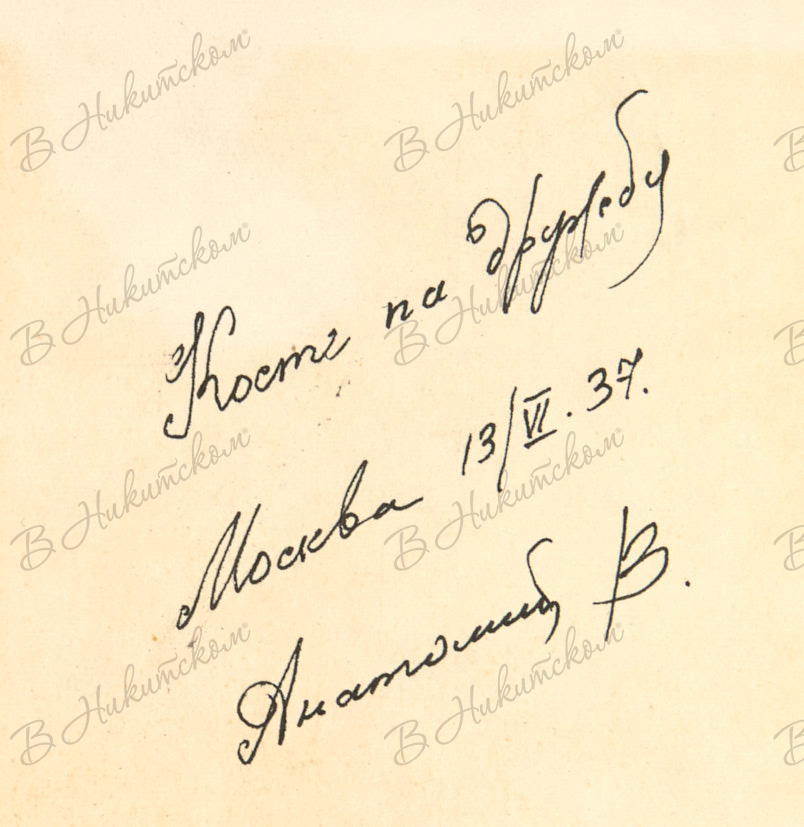 1 л. фронт., 635, [5] с., ил. 20 х 13,5 см. В коленкоровом издательском переплете с потухшим золотым тиснением. Потертости переплета, блок преимущественно чистый. На обороте форзаца 2а дарственная надпись: «Косте на дружбу / Москва 13/VI.37. / Анатолий В.»