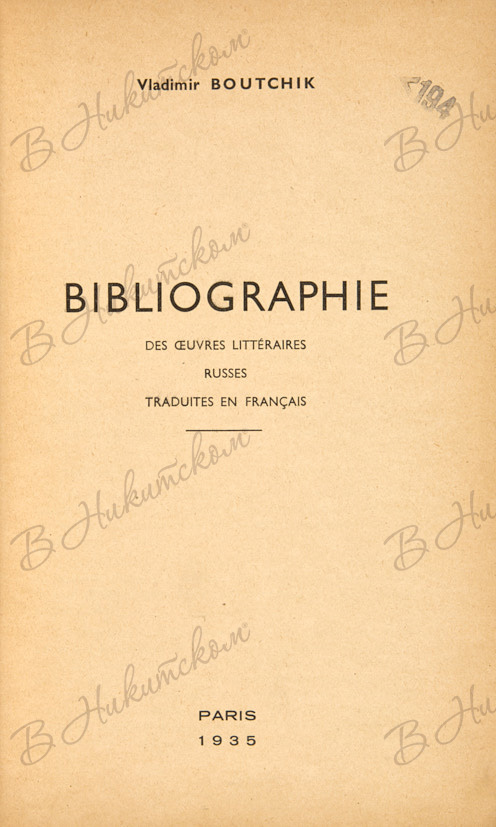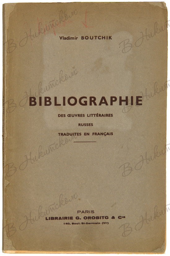 [Экземпляр библиографа Н.И. Мацуева. Издание на франц. языке. Бутчик, В. Библиография]. Bouthik, V. Bibliographie. Париж, 1935.