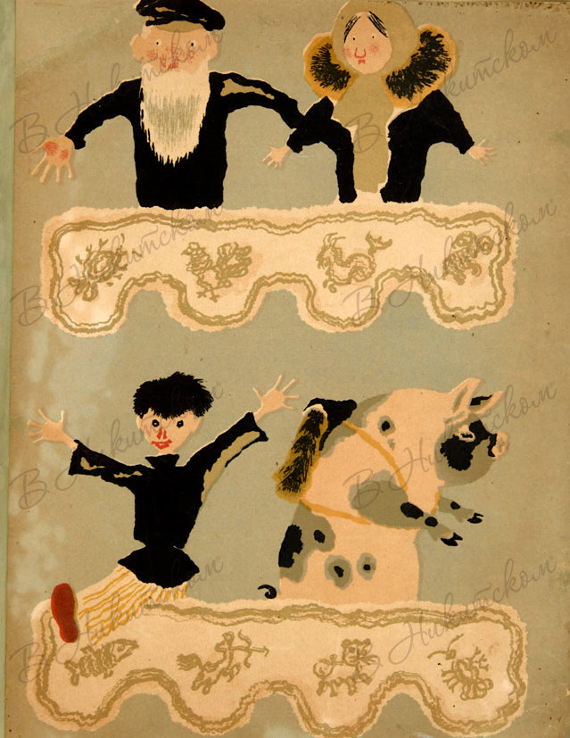 12 с., ил. (вкл. обл.) 29 х 22 см. Задняя сторонка обложки восстановлена. Первые четыре издания вышли с рисунками Конашевича. Представленное издание – первое оформленное В. Лебедевым.