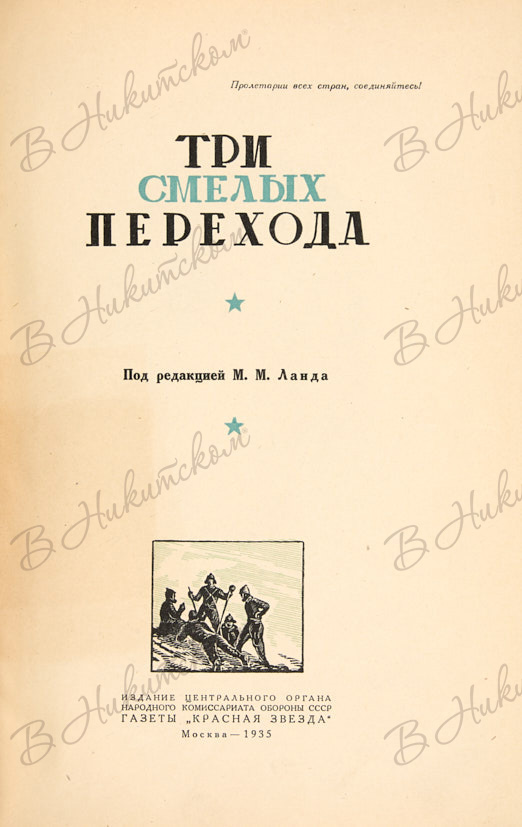Три смелых перехода / под ред. М.М. Ланда. М.: Издание газеты «Красная звезда», 1935.