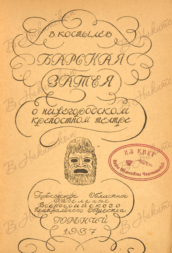 Костылев, В.И. Барская затея. О Нижегородском крепостном театре. Горький: Горьковское областное отделение Всероссийского театрального общества, 1937.