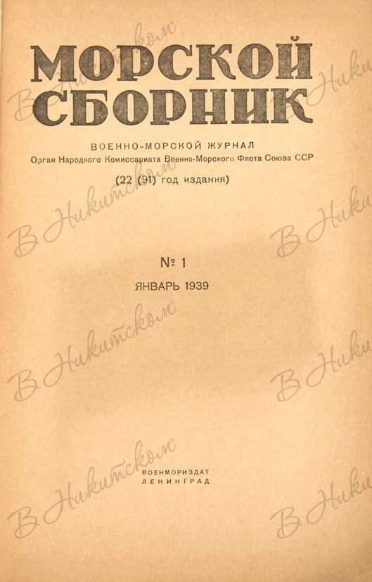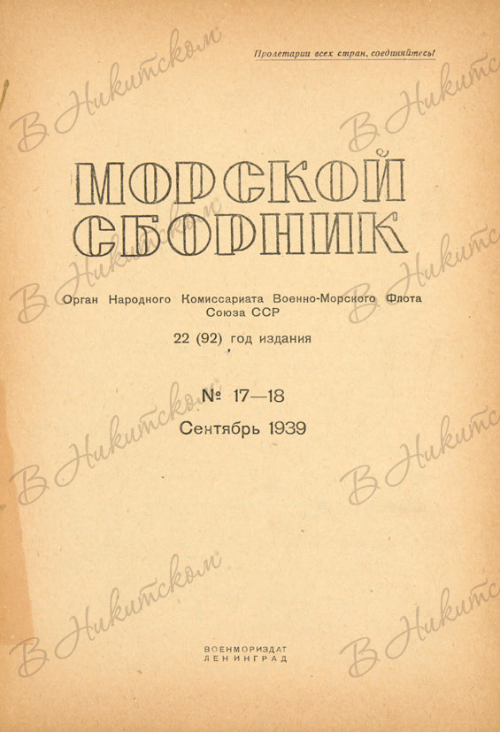Морской сборник. № 1, 17-18, 23-24 за 1939 г. Л.: Военмориздат, 1939.