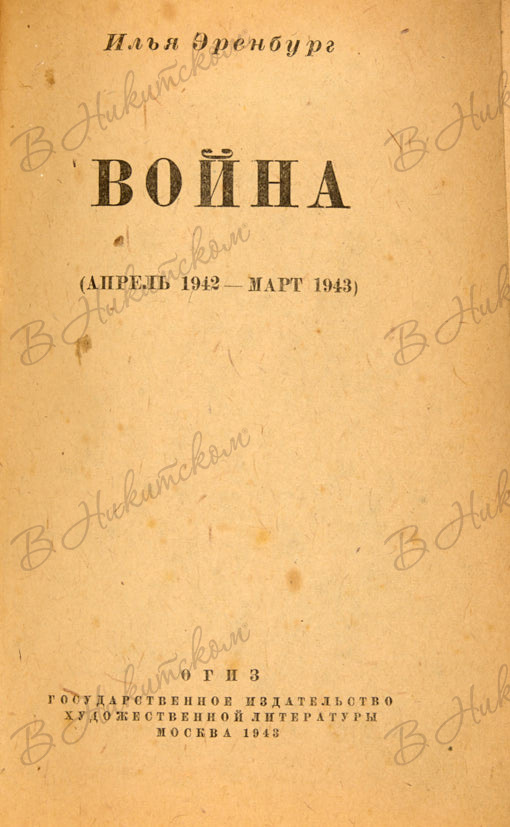 Эренбург, И. Война. (Апрель – март 1943). М.: ОГИЗ; ГИХЛ, 1943.