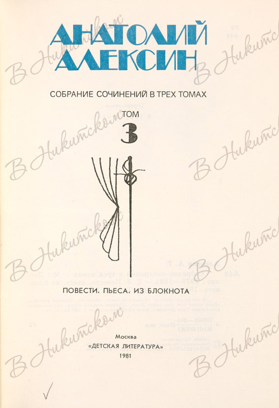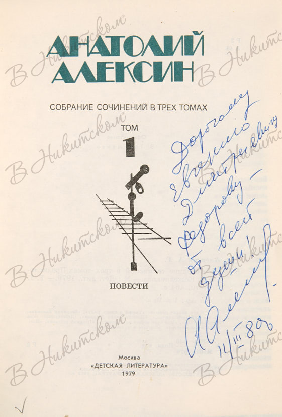 Алексин, А. [Автограф]. Собрание сочинений. В 3 т. Т. 1-3. М.: Детская литература, 1979-1981.