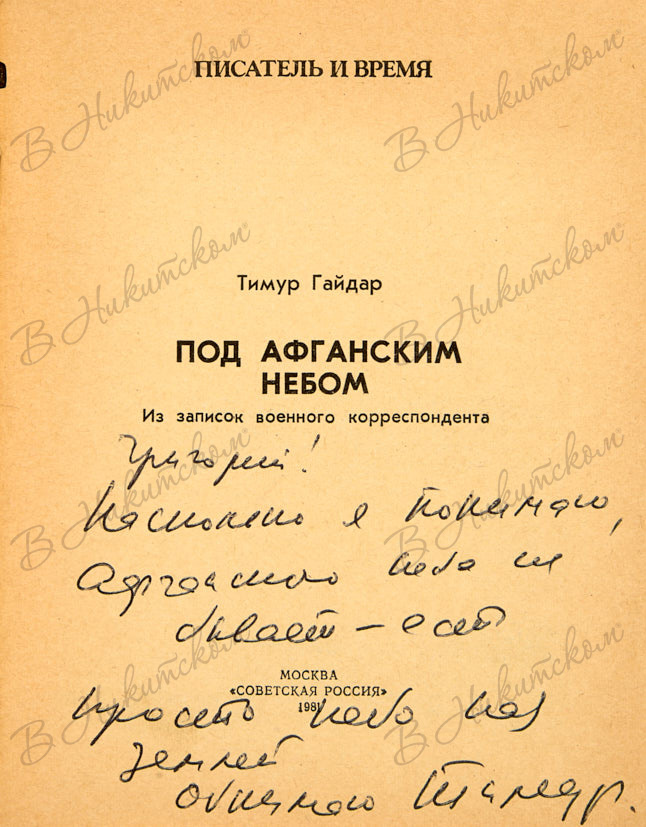 [Серия «Писатель и время»] Гайдар, Т. [Автограф]. Под Афганским небом. М.: «Советская Россия», 1981.