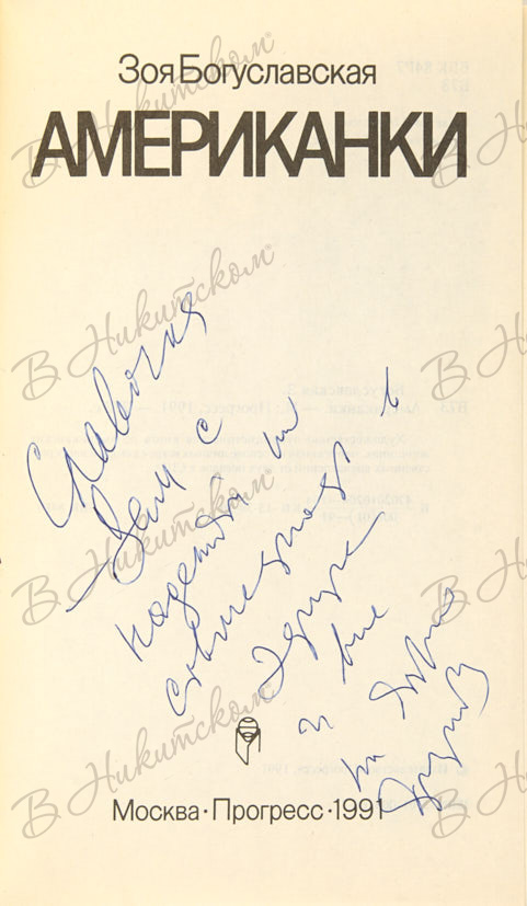 Богуславская, З. [Автограф С.И. Бэлза]. Американки. М.: «Прогресс», 1991. [Автограф С.И. Бэлза].