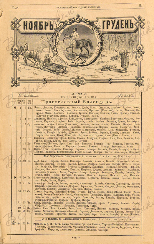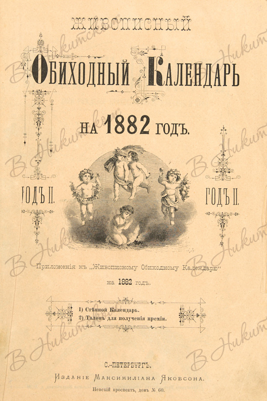 Живописный Обиходный Календарь на 1882 год. СПб.: Издание Максимилиана Якобсона, 1881.