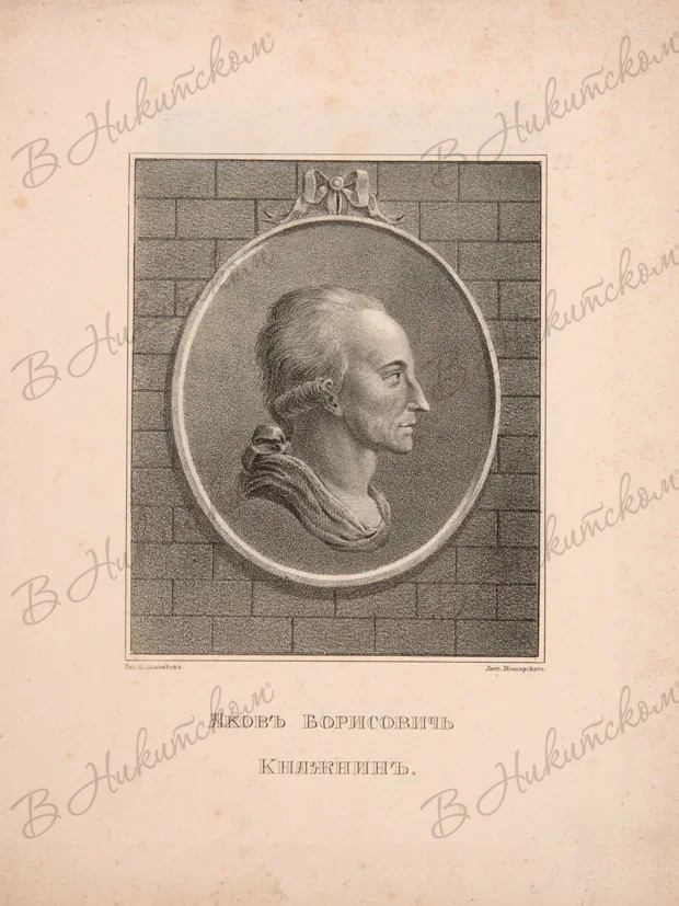 Портрет драматурга Я. Б. Княжнина. 1839 г. Гравюра, 29,7×21,6 см.