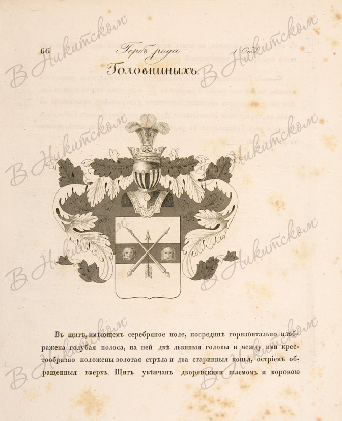 Герб рода Головниных. Лист из альбома "Русская геральдика". 1860-е гг. Гравюра резцом на меди, 31*23 см.