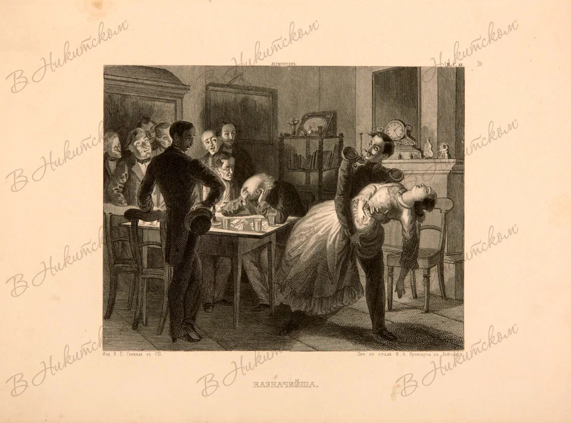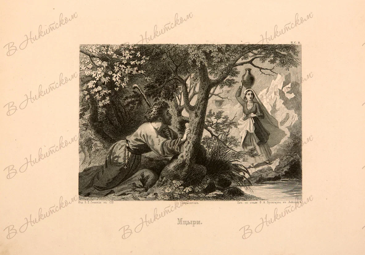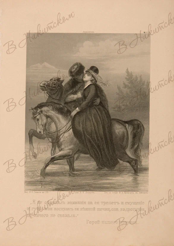 Лот из четырех гравюр из альбома "Северное сияние. Русский художественный альбом" В.Г. Генкеля в Санкт-Петербурге с иллюстрациями к произведениям М. Ю. Лермонтова: "Мцыри", "Герой нашего времени". 1862-1865. Гравюра резцом и пунктиром на стали. 19,3*26,3 см.