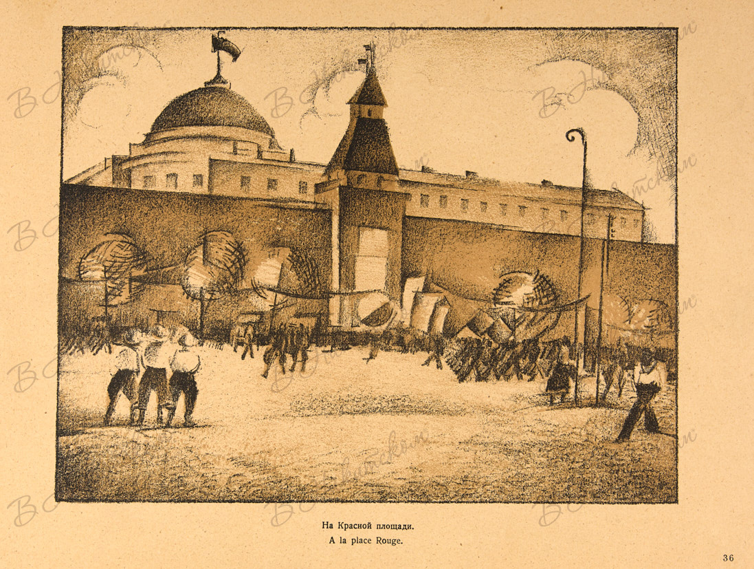 На Красной площади. 1921 г. Издание "Революционная Москва к третьему конгрессу Коминтерна". Литография, 26*35,5 см.