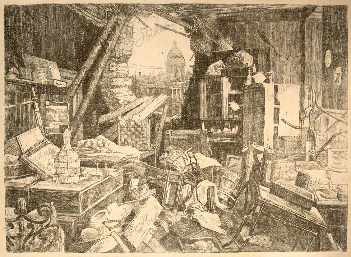 Ленинградская квартира после артобстрела. 1943 г. Бумага, офорт, 52×59 см.