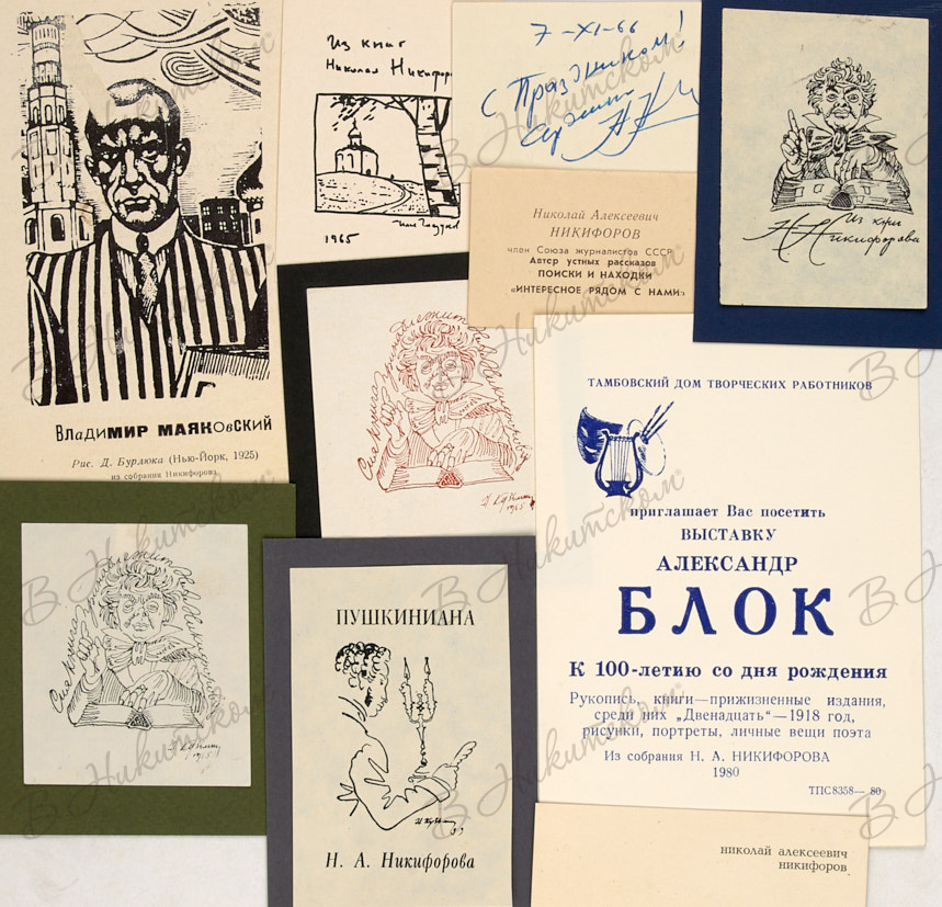 Лот из 15 единиц из миниатюрной графики М. Трухницкого. 1960-1970 гг. Конверты со штампом и экслибрисы Рокуэла Кента. Автограф художника Г. Карлова на бланке с котом. Экслибрис Н. Никифорова Ильи Глазунова. Экслибрисы Н. Кузьмина для Н. Никифорова. Визитные карточки Н. Никифорова. Бумага, ксилография.