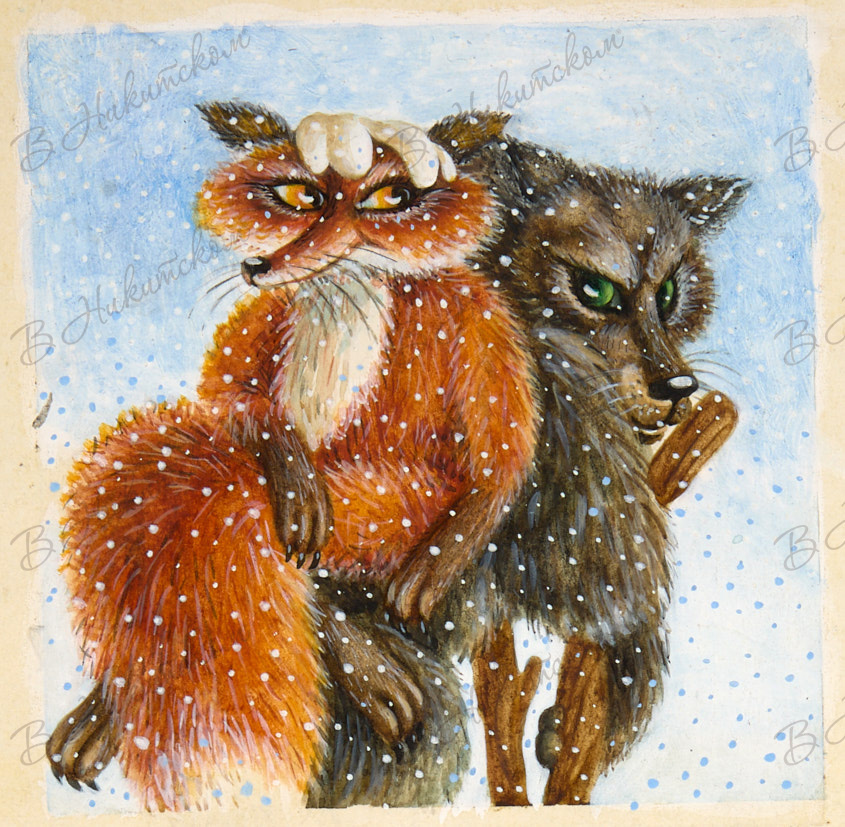 Иллюстрация к сказке «Битый небитого везёт…». 1960-е гг. Бумага, акварель, белила, 13*12,5 см.