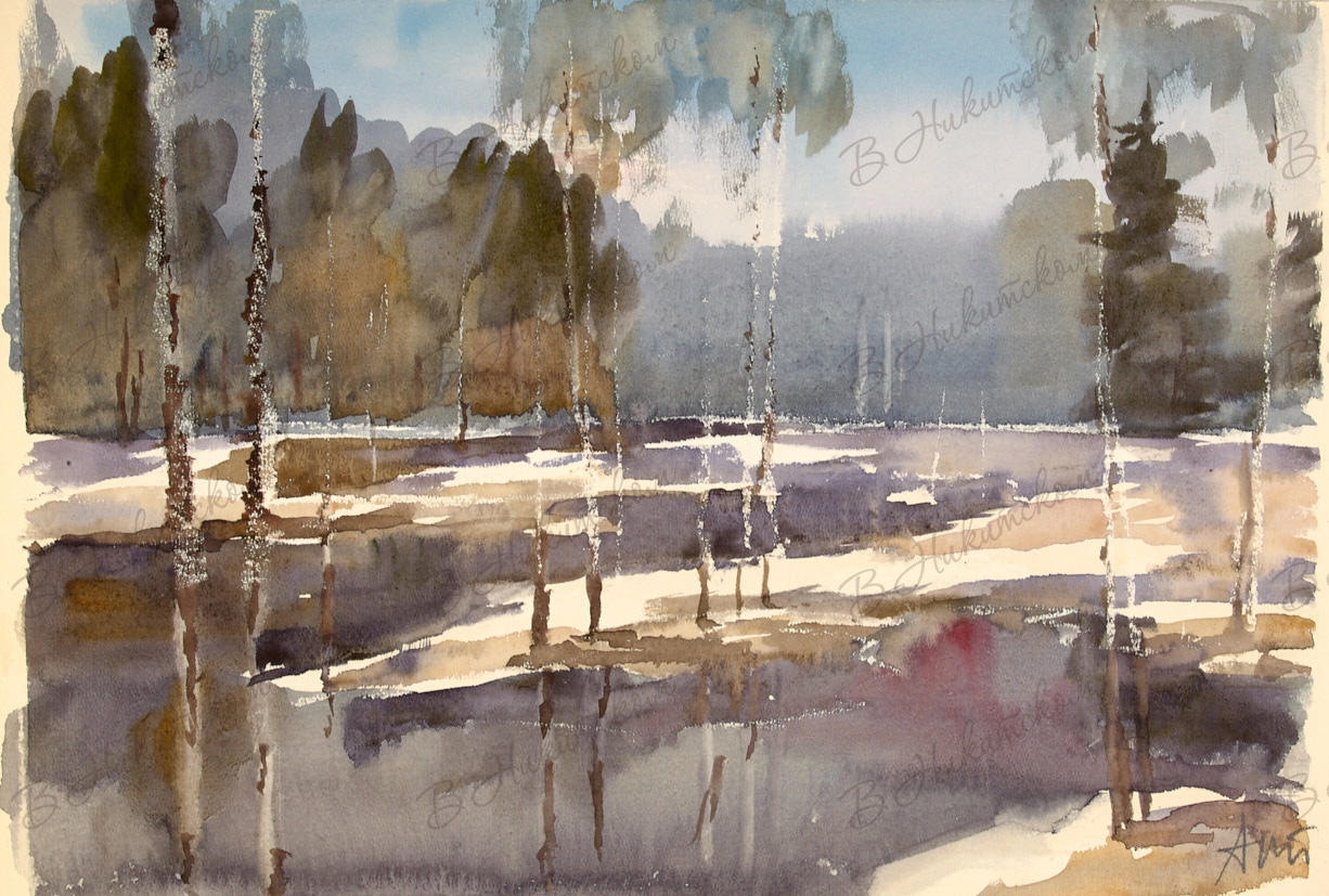 Весна. Проталины. 1980-е гг. Акварель, кисть, 24,5*36,7 см.
