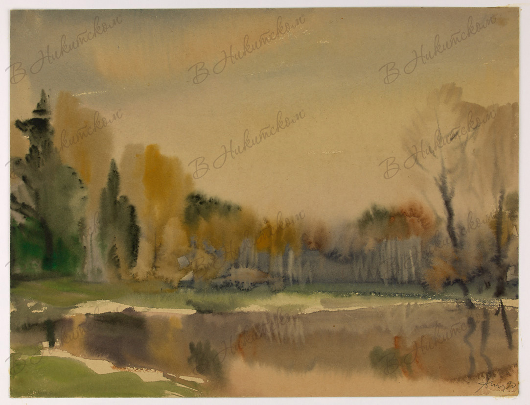 Осенняя элегия. 1990 г. Акварельная бумага, акварель, 28*37 см.