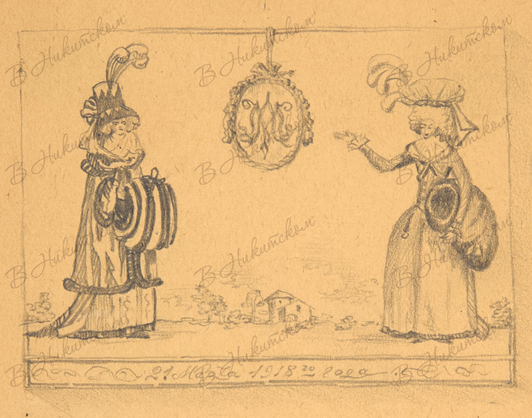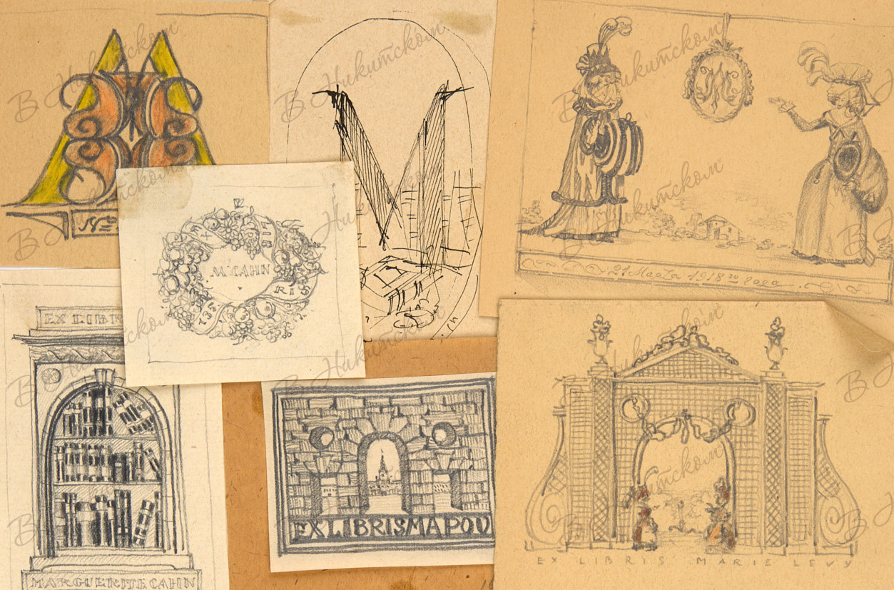 Лот из 7 эскизов книжных знаков. Россия. 1916-1921 гг. Бумага, карандаш, 11*8 см.
