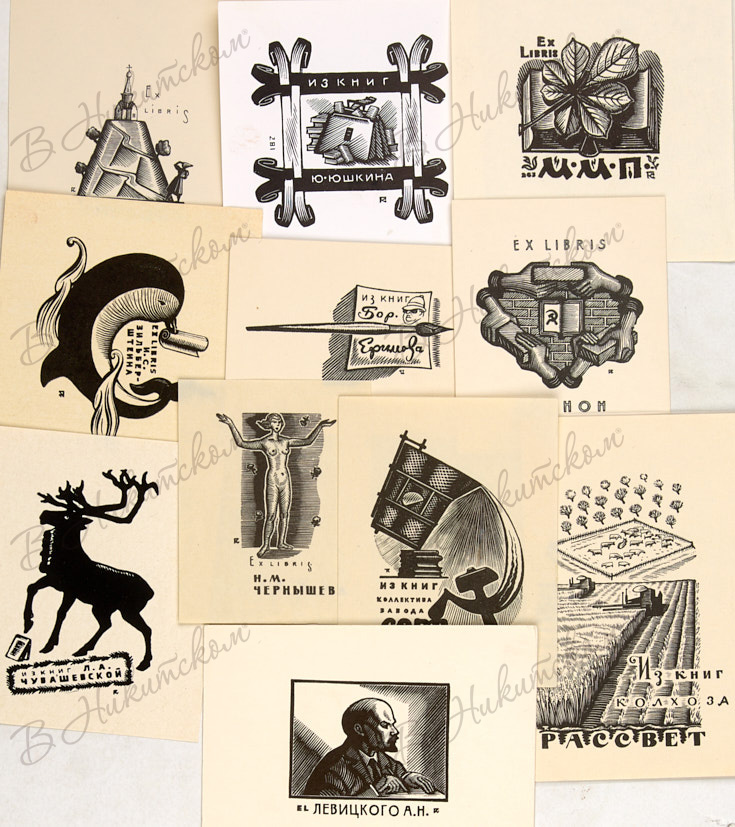 Лот из 11 экслибрисов. 1960-1970-е гг. Бумага, ксилография, 10*8 см.