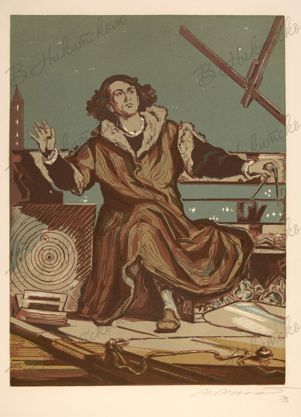 Портрет Николая Коперника. 1973 г. Авторский оттиск. Бумага, цветная линогравюра. 51×40 см.