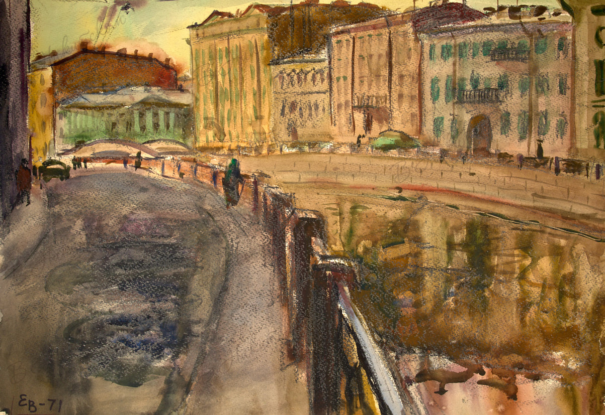 Набережная реки Мойки. Ленинград. 1971. Бумага, акварель, 48×68 см.