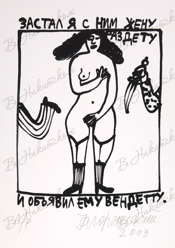 «Застал я с ним жену раздету…». 2009 г. Бумага, шелкография, 42×30 см.