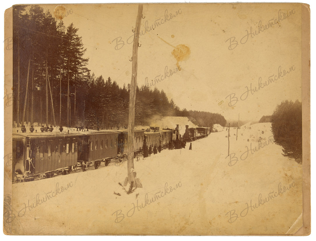 Смена паровоза на Саратовской железной дороге. 1890-е гг. Фотография, 22*28 см. На паспарту Фотографии М. В. Гольдберг в Саратове